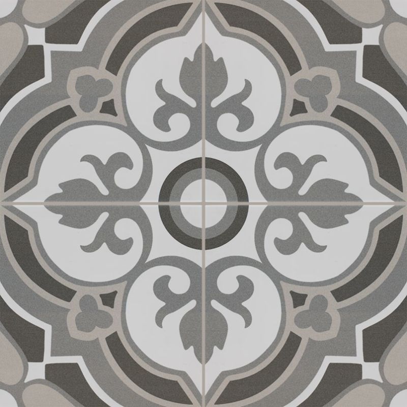 - Exotic and intriguing, Matarka Encaustic Tiles from the Kenzzi Collection feature an eye-catching floral pattern in taupe, charcoal, and white. Offered in an 8 x8 size with a matte finish, these handcrafted tiles recreate the sophisticated detail of hand-painted tiles. Durable, easy to clean, and maintain, the tiles are perfect for indoor and outdoor usage in residential and commercial applications. Create gorgeous kitchens, bathrooms, mudrooms, outdoor fireplaces, accent walls, and more with the arresting Matarka Encaustic Tiles.