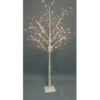 Beautifully formed with a realistic silhouette, lifelike branches, and a dusting of the new-fallen snow. This white tree has an authentic woodland look you'll love. The warm LED white lights on the branches let you create a subtle lighted display indoors or outside. Its a 6 ft Birch twig tree with flashing Lights and a square metal base.