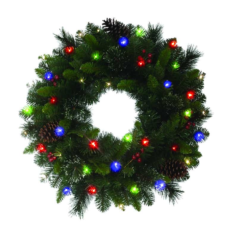 Celebrations 26 in. Dia. LED Prelit Decorated Cedar Pine Designer Wreath